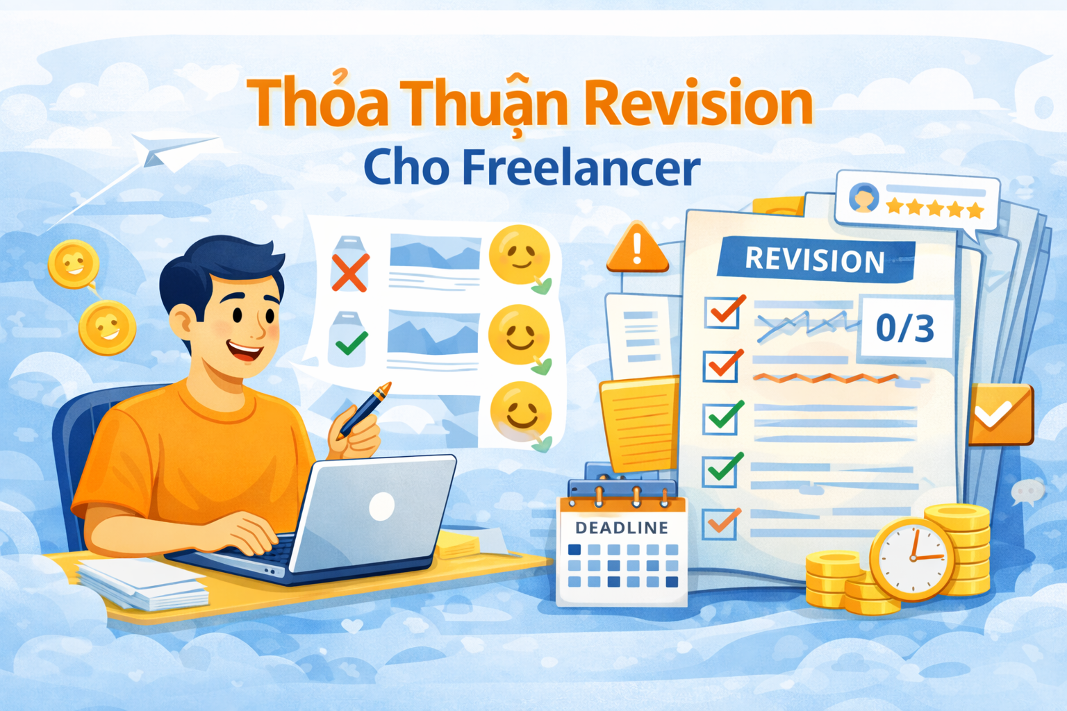 Trong quá trình làm việc freelance, revision (chỉnh sửa) là điều gần như không thể tránh khỏi. Tuy nhiên, điều khiến nhiều freelancer “mệt mỏi” không nằm ở việc sửa, mà nằm ở sửa không giới hạn, sửa không rõ ràng, sửa vượt scope ban đầu. Không ít freelancer đã từng rơi vào tình huống: “Khách nói sửa chút thôi, nhưng sửa mãi không xong”. Chính vì vậy, thỏa thuận revision cho freelancer không còn là lựa chọn, mà là bắt buộc nếu bạn muốn làm việc chuyên nghiệp, giữ được thời gian, công sức và lợi nhuận.